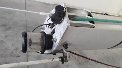 À l'arrivée de transat, des travaux sont à faire en tête de mât. Vu la configuration, impossible sans démâter. Après étude approfondie, il est décidé d'en profiter pour refaire le gréement.